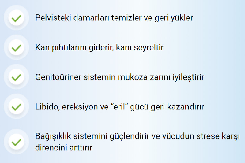 - 7-21 günlük kullanım için potens ve tüm cinsel işlevler geri yüklenir.